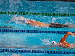 In the 50 meter freestyle, I had to get 34:00 to get an official time. I made the time with 33:59 and also won my heat. Overall I came in 95 of 125 who raced. Only 99 made the time.